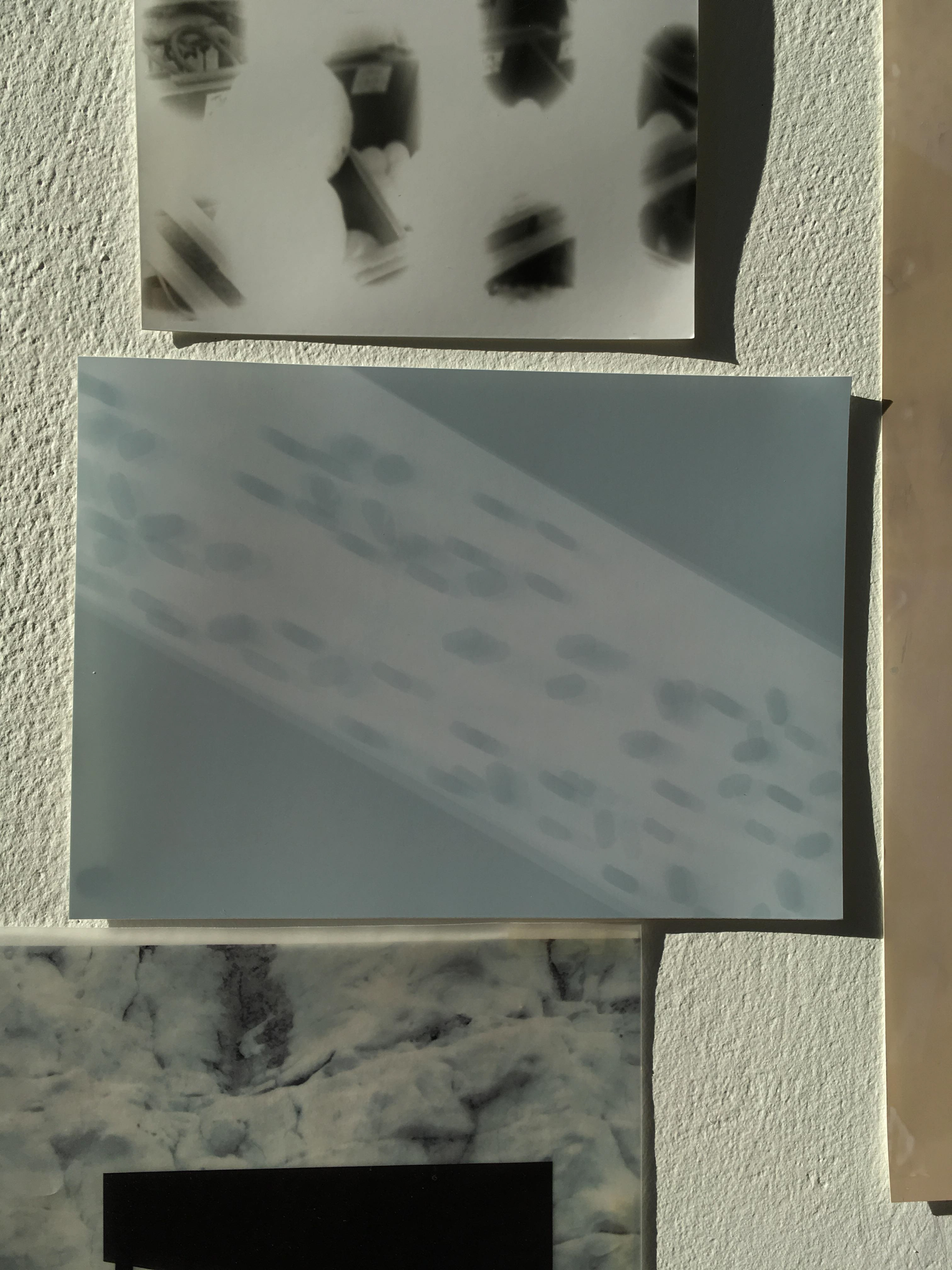 From the crit club, one comment was said about how the work is really looking at the basic elements of photography which is the light. From our experiments we now know we need to leave them for a lot longer in light as they washed out almost completely. The impact of leaving out longer will mean the shapes will change according to the light movement, and it will weaken and strengthen at different periods of the day.