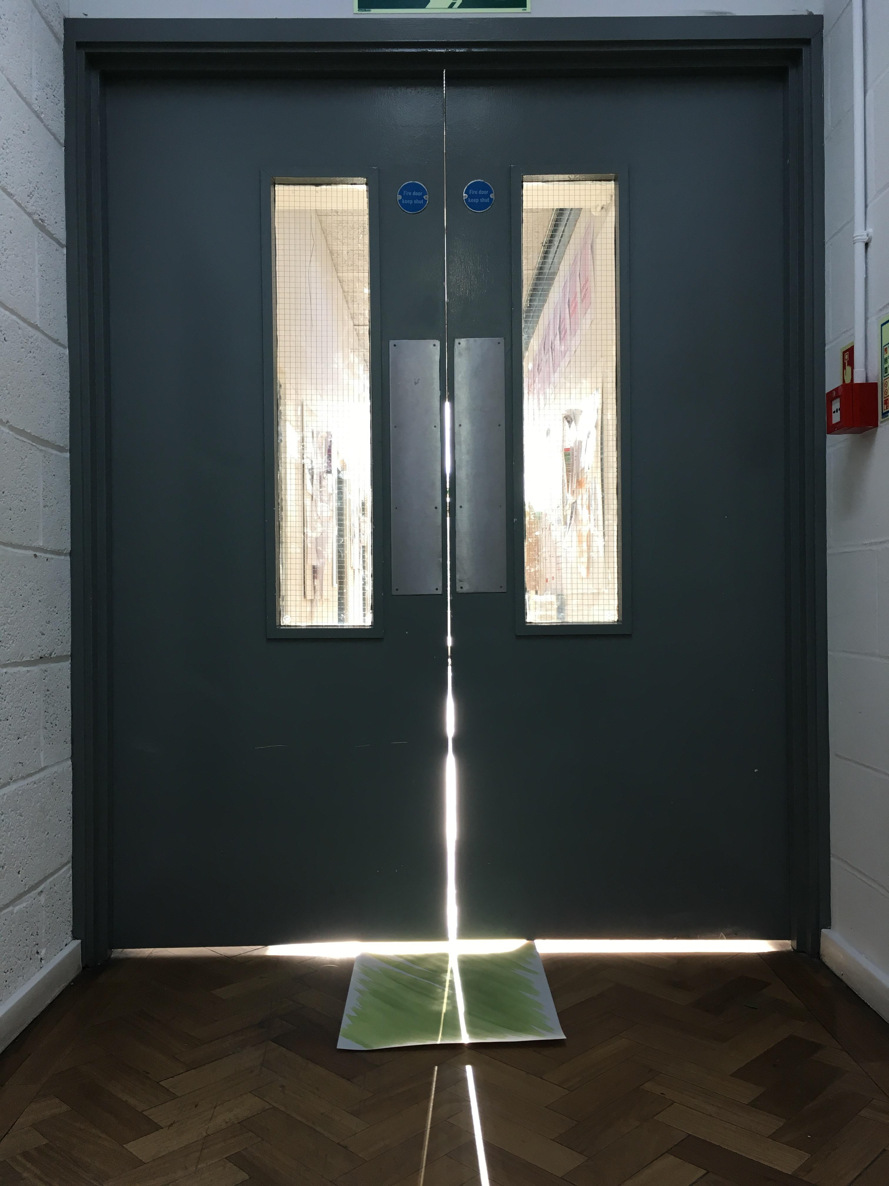 These were the first experiments, capturing the light rays coming through the door. As we placed the work in an unconventional place, people were needing to get through and open the doors and so new shapes where starting to take place on the paper.