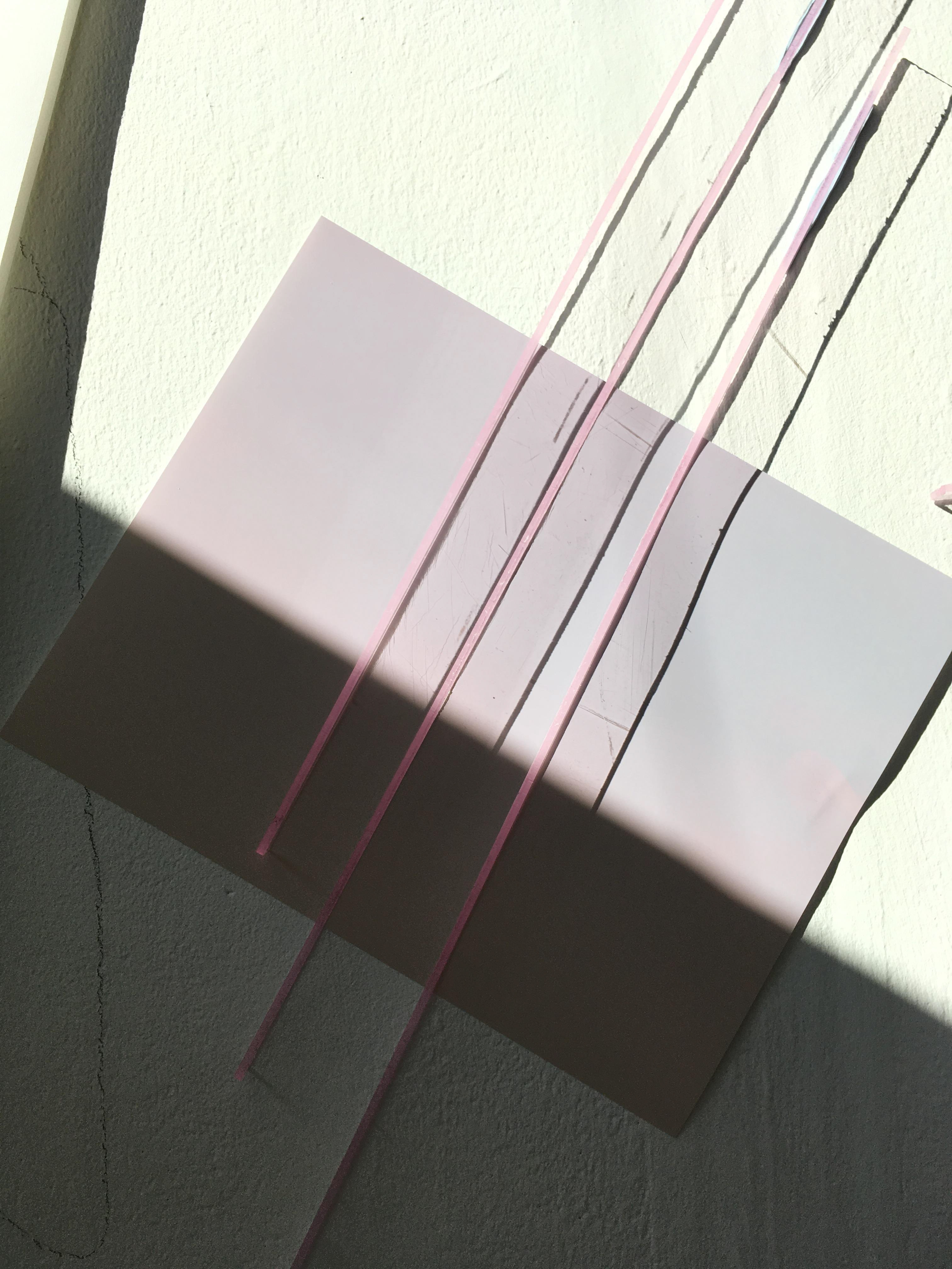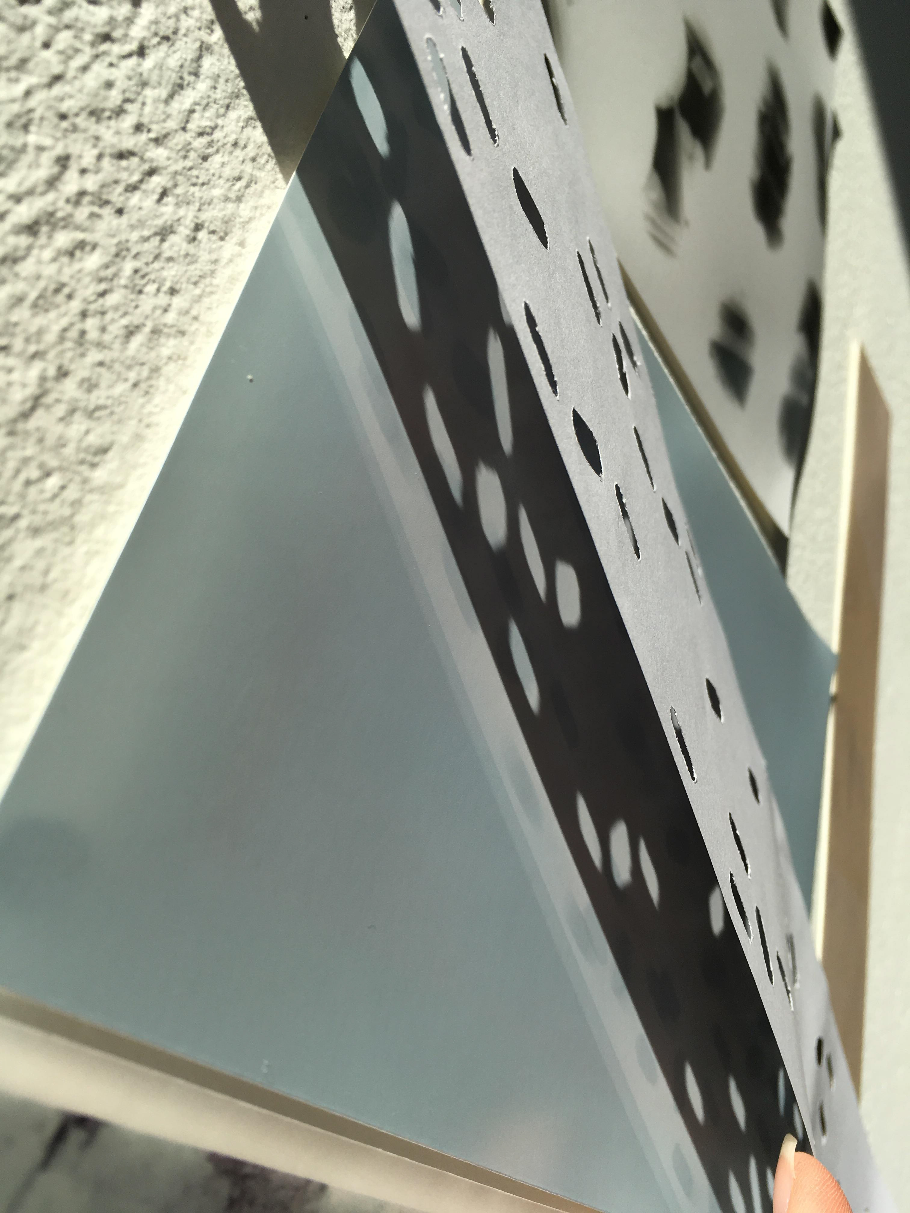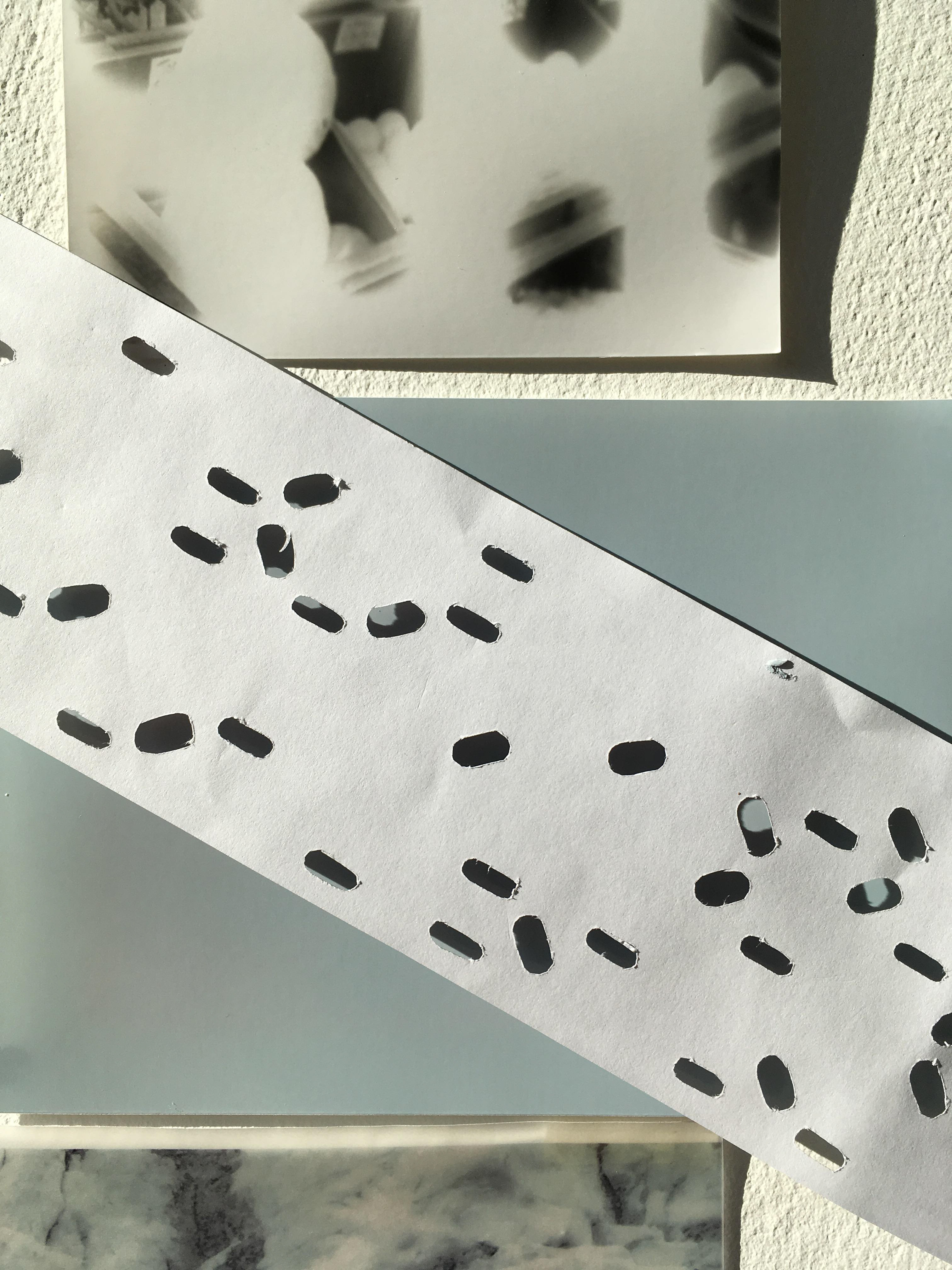 From studies and observations of the textures and materials in the studio, the 'pill' like shape has been used to create a stencil in framing the light. This shape has reoccurred as it was present in my project last year when i was looking at Cliftonville and the shutters of the shops took my eye. This idea of framing the world is seen throughout my work in the way I photograph, mainly use the frame of the phone screen to composition the photograph. It also plays with the idea's of layers and playing with positive and negative space.
