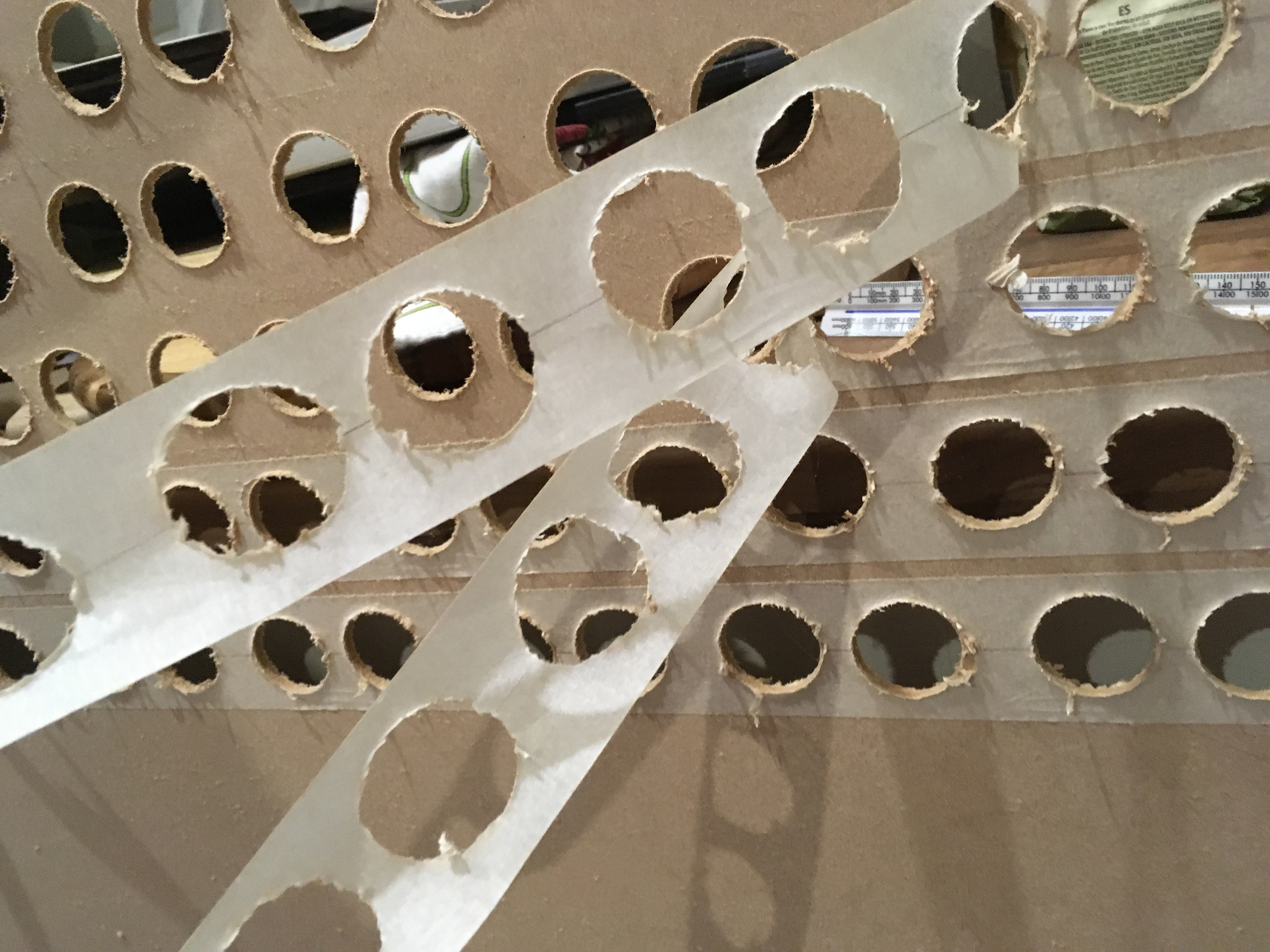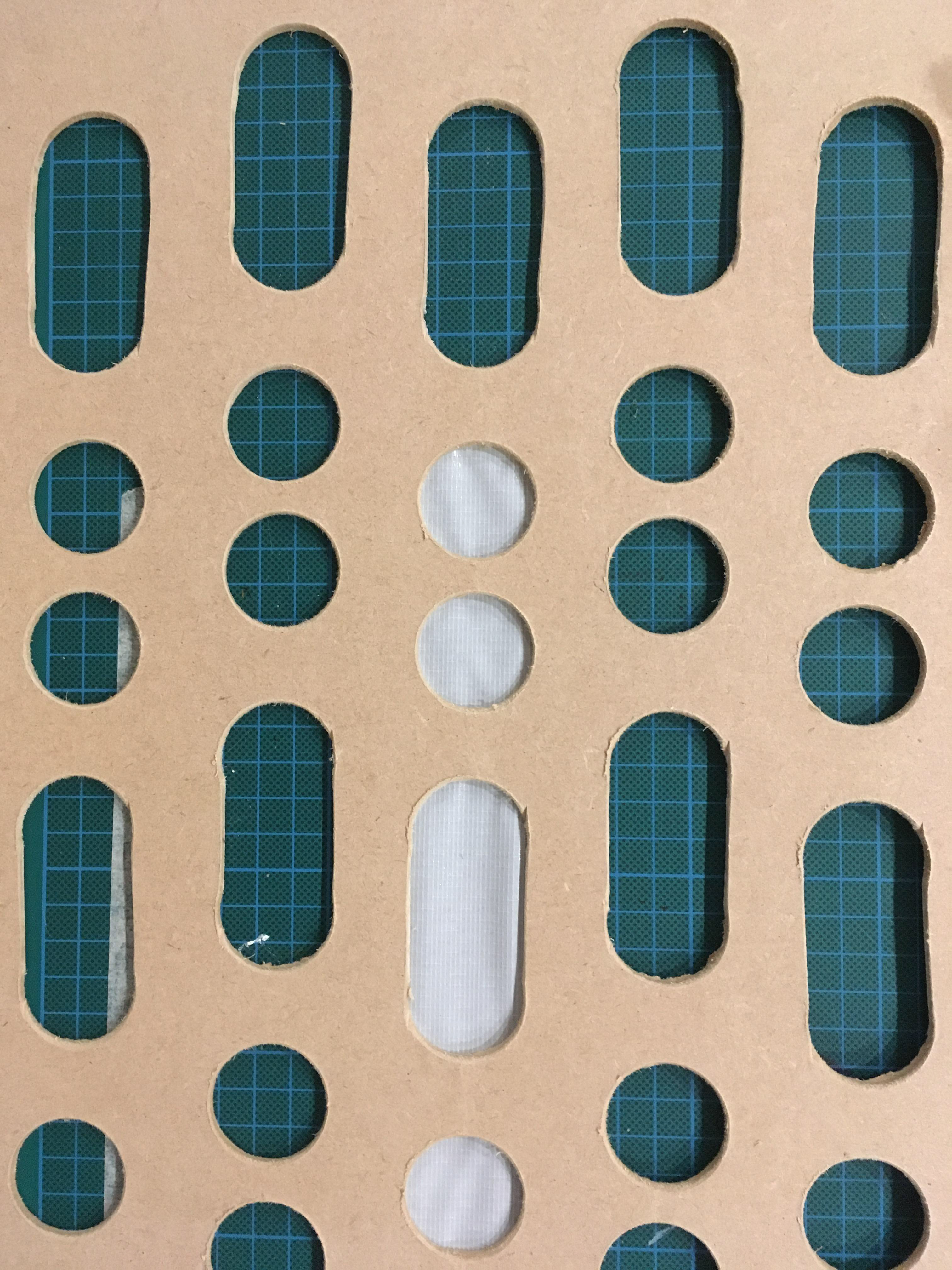 I first tested this idea by creating a pattern that I could cut at home with the tools i had to use, as laser cut wouldn't fit 8x4 mdd board. I couldn't create the oblong shapes to scale as the cutters i had where bigger, to create a pattern that what interesting but referenced to the cable tray.