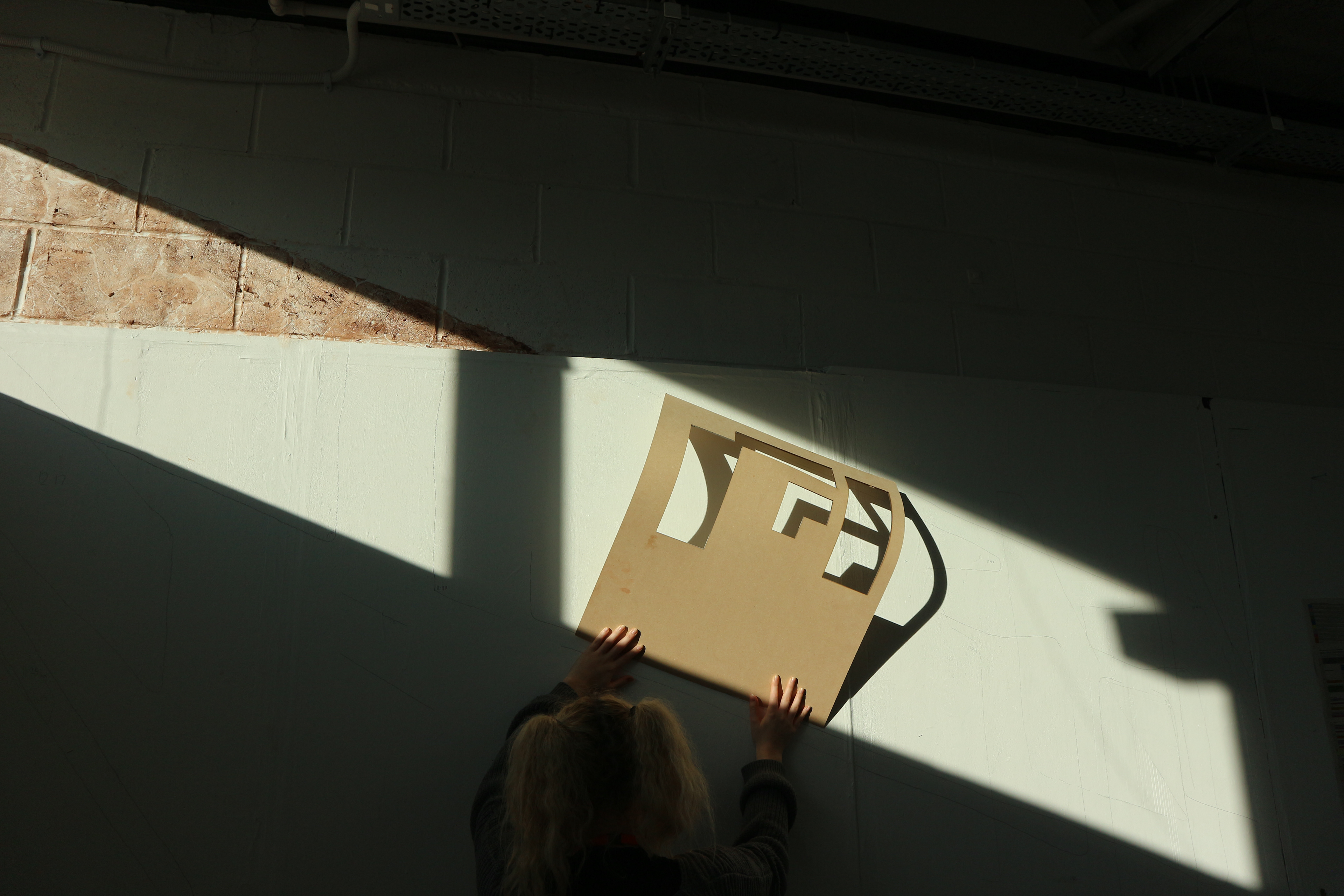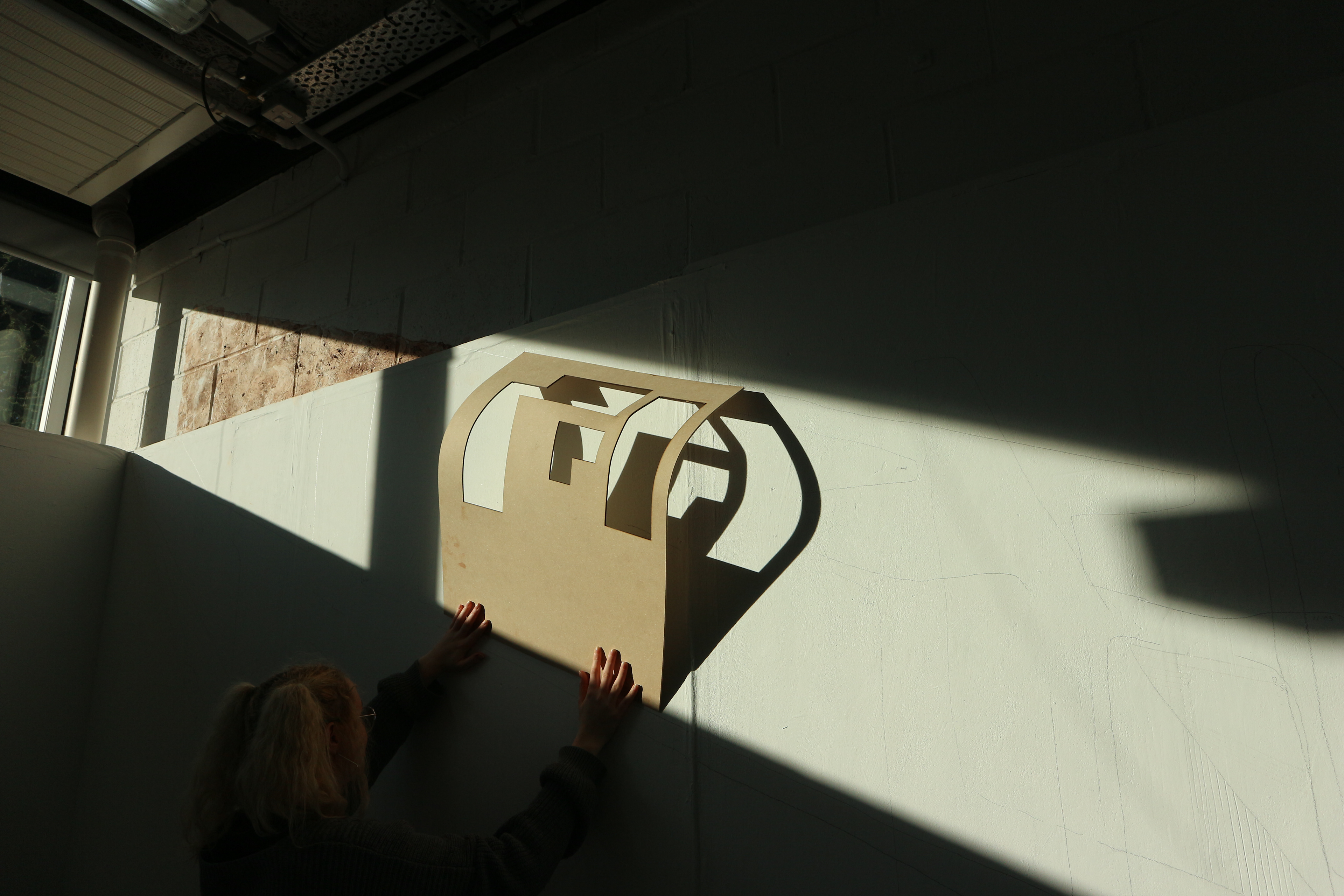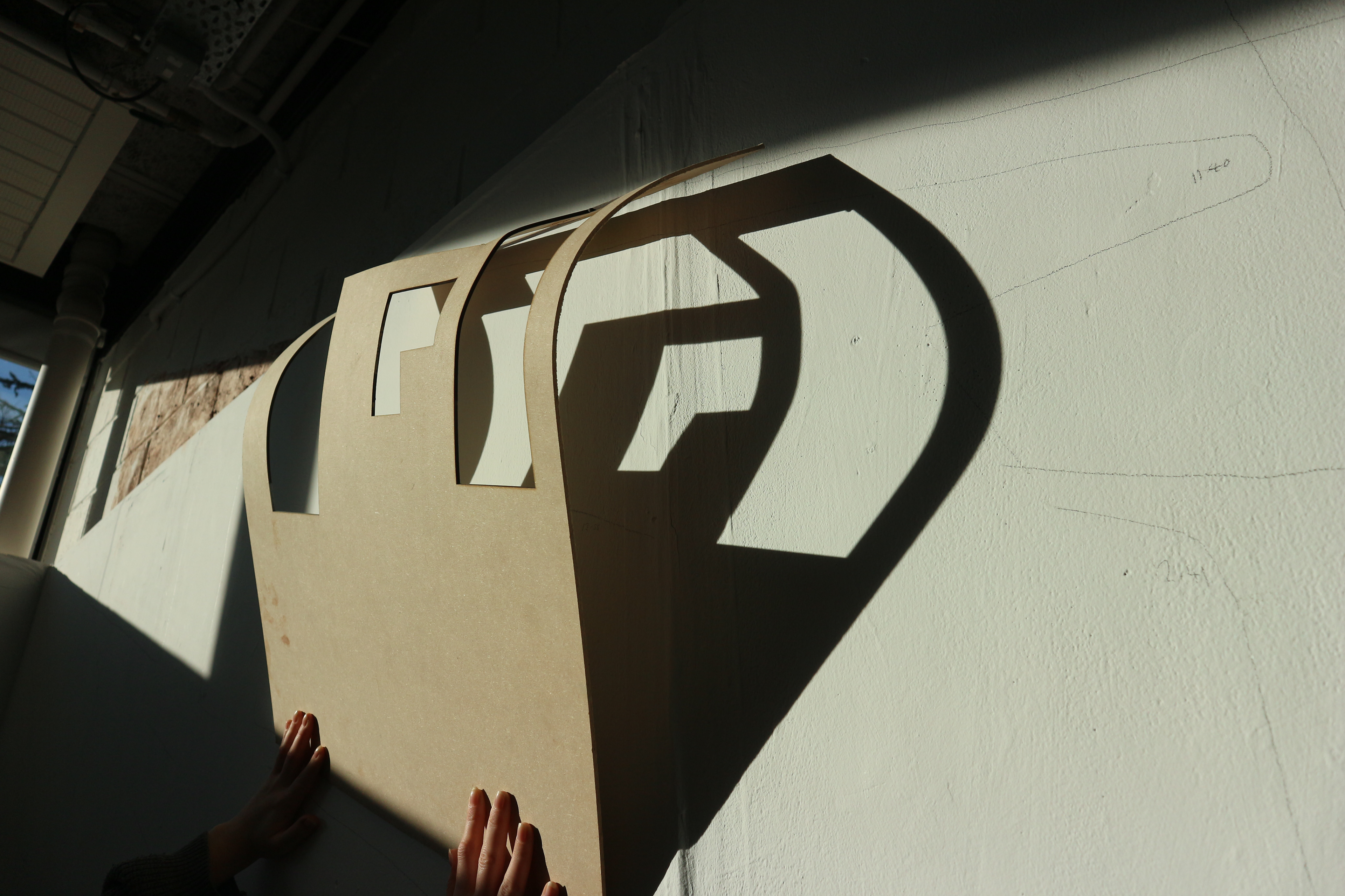 Playing with the shapes in the light, play of positive and negative space (shadows and the cut out space of the MDF).