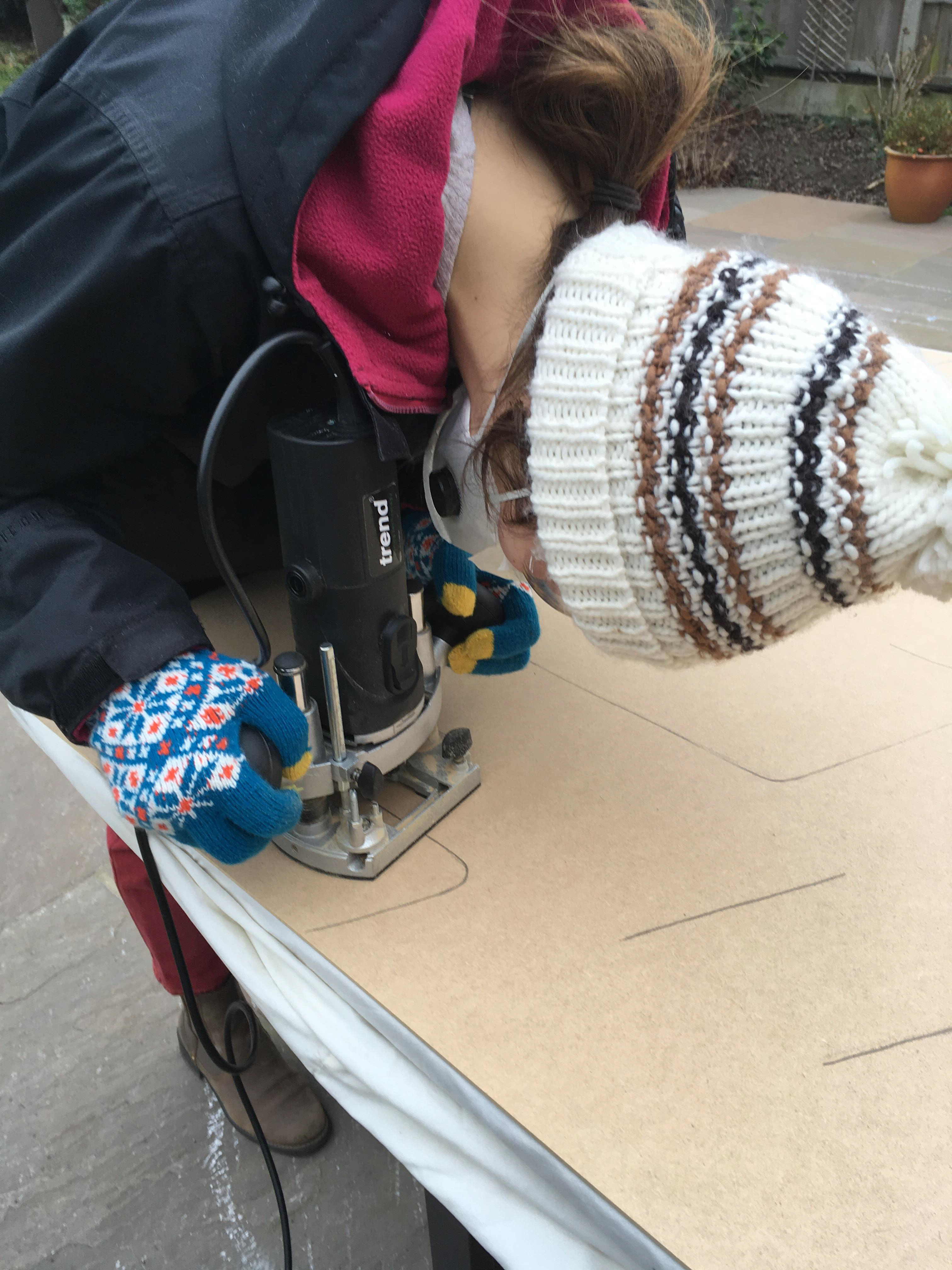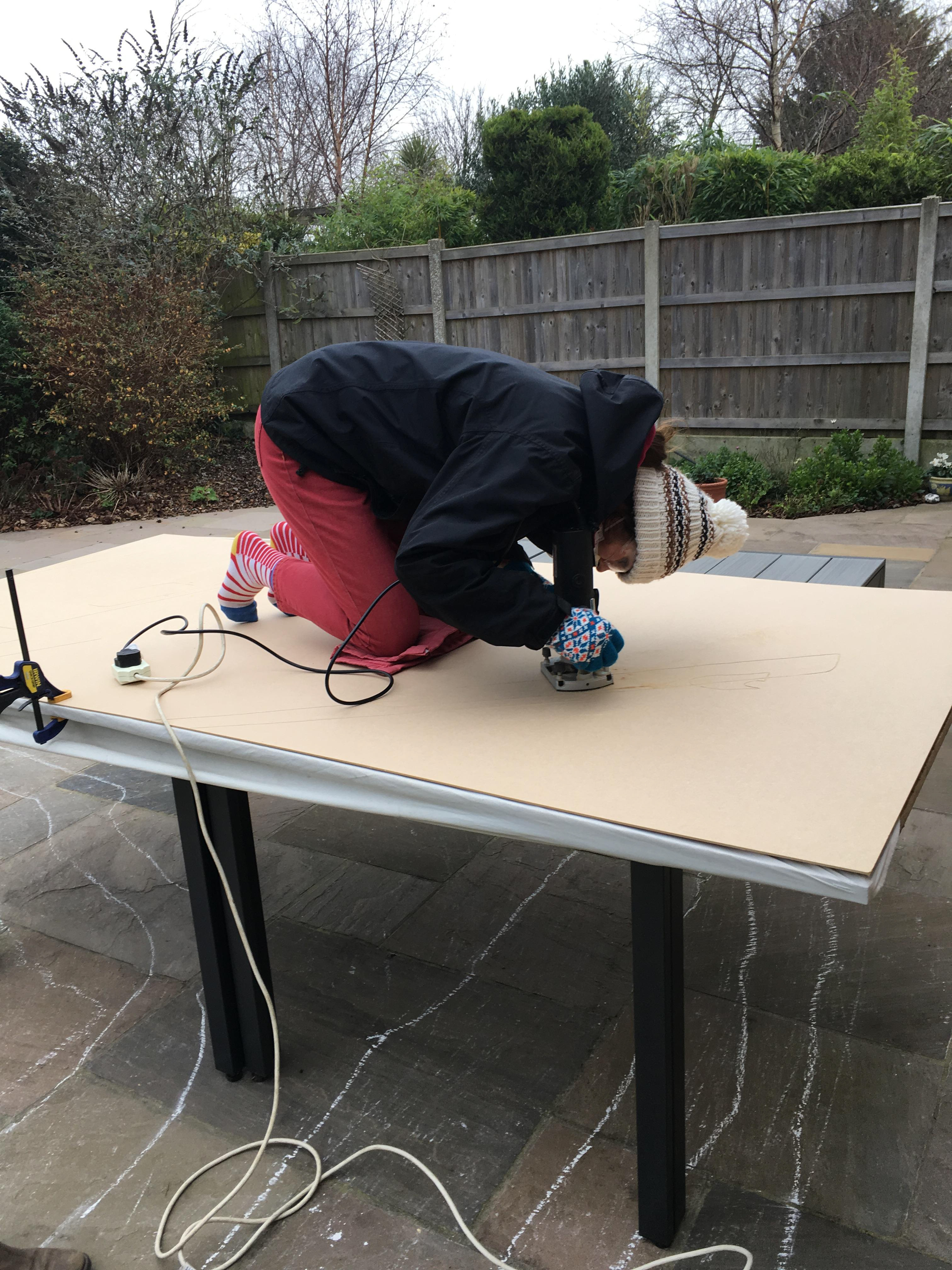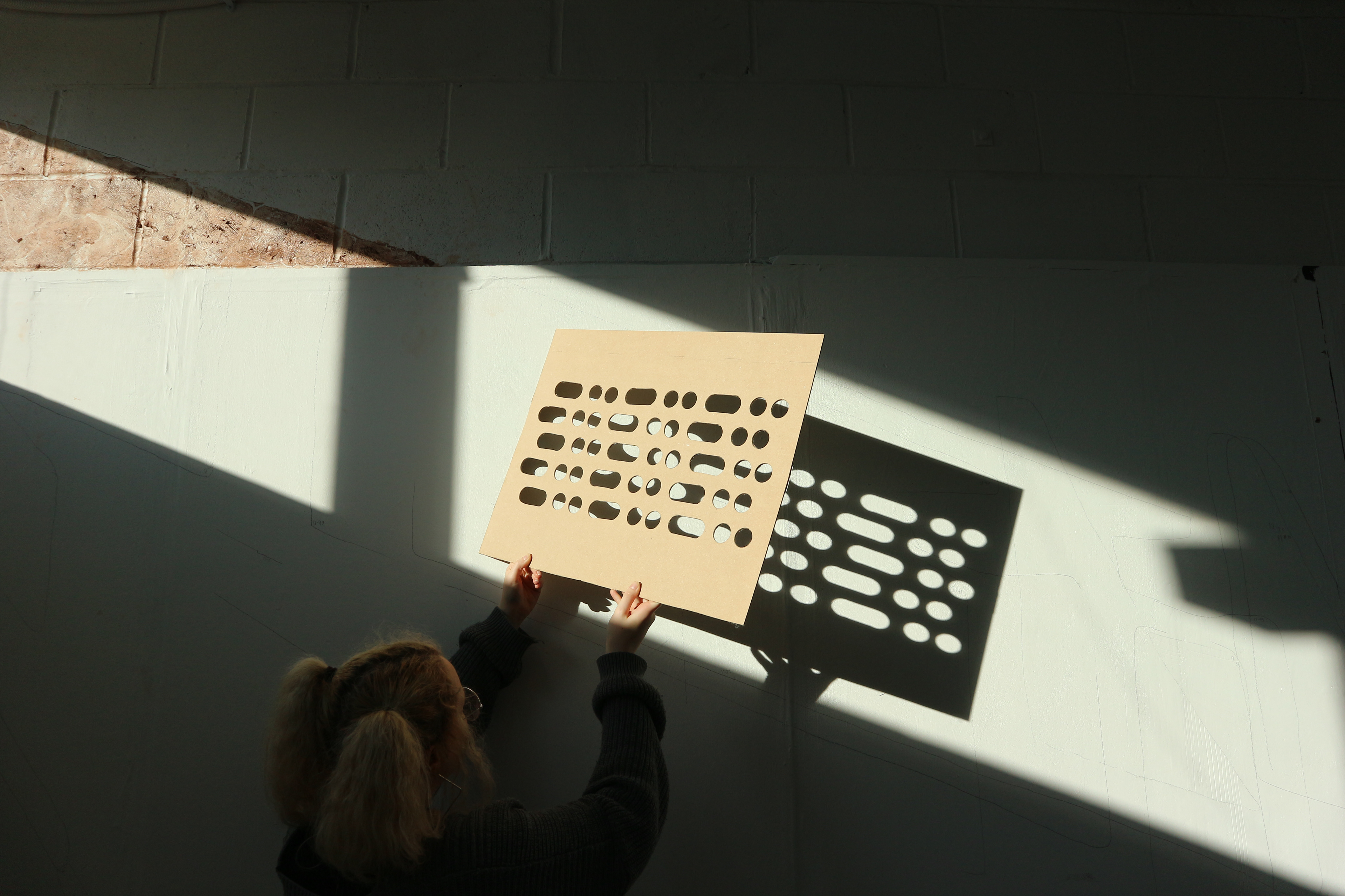 Playing with the shapes in the light, play of positive and negative space (shadows and the cut out space of the MDF).