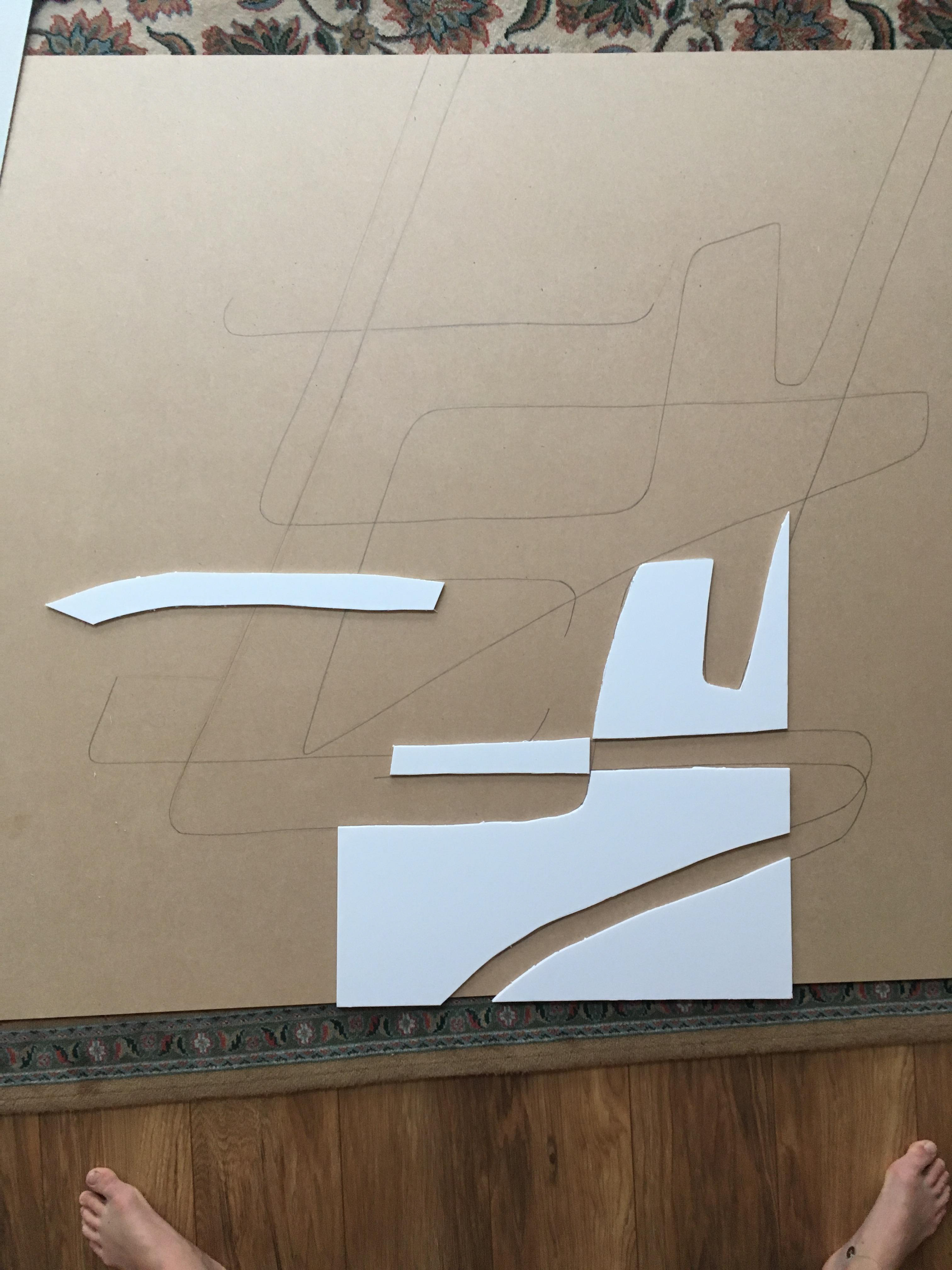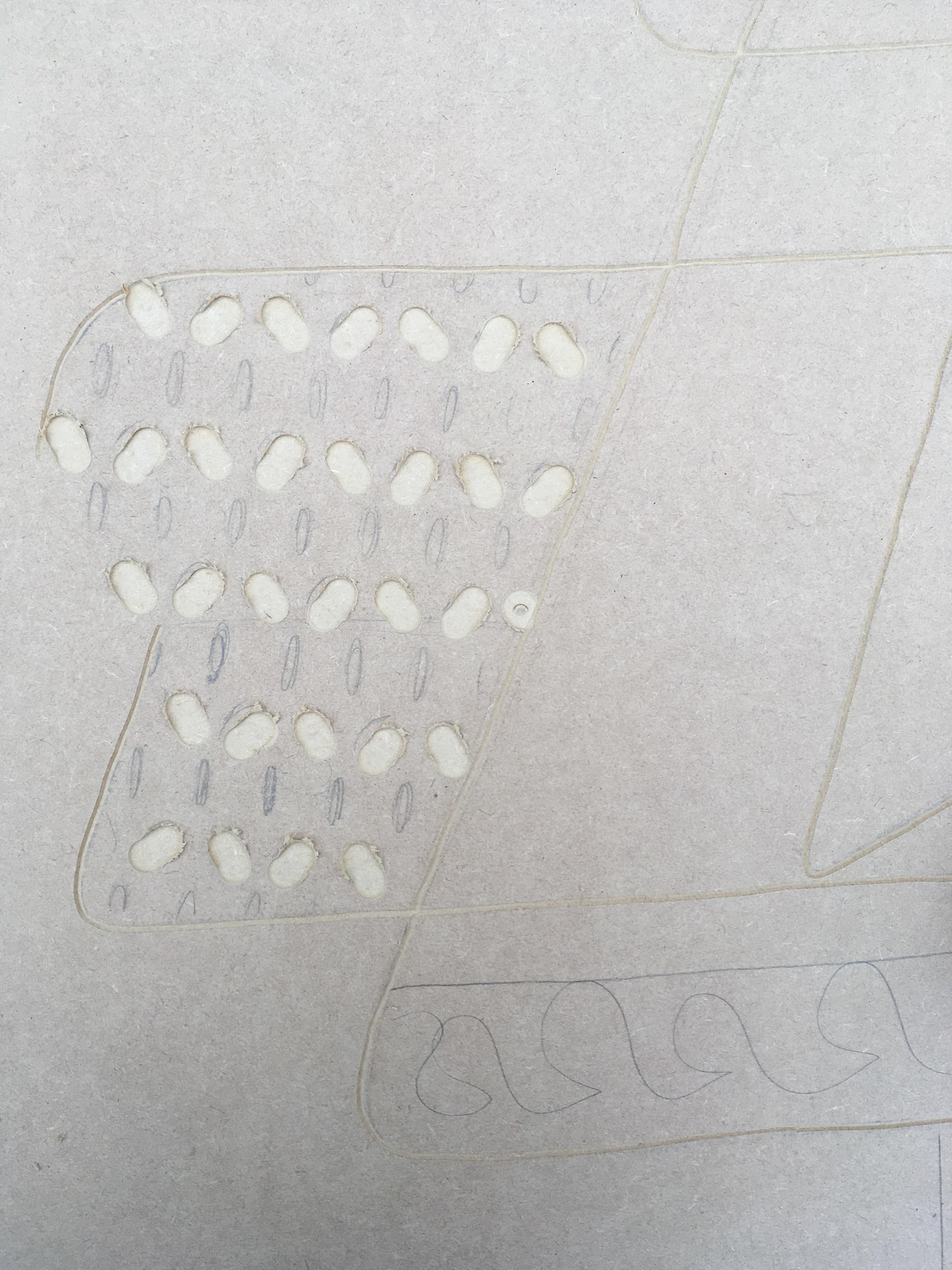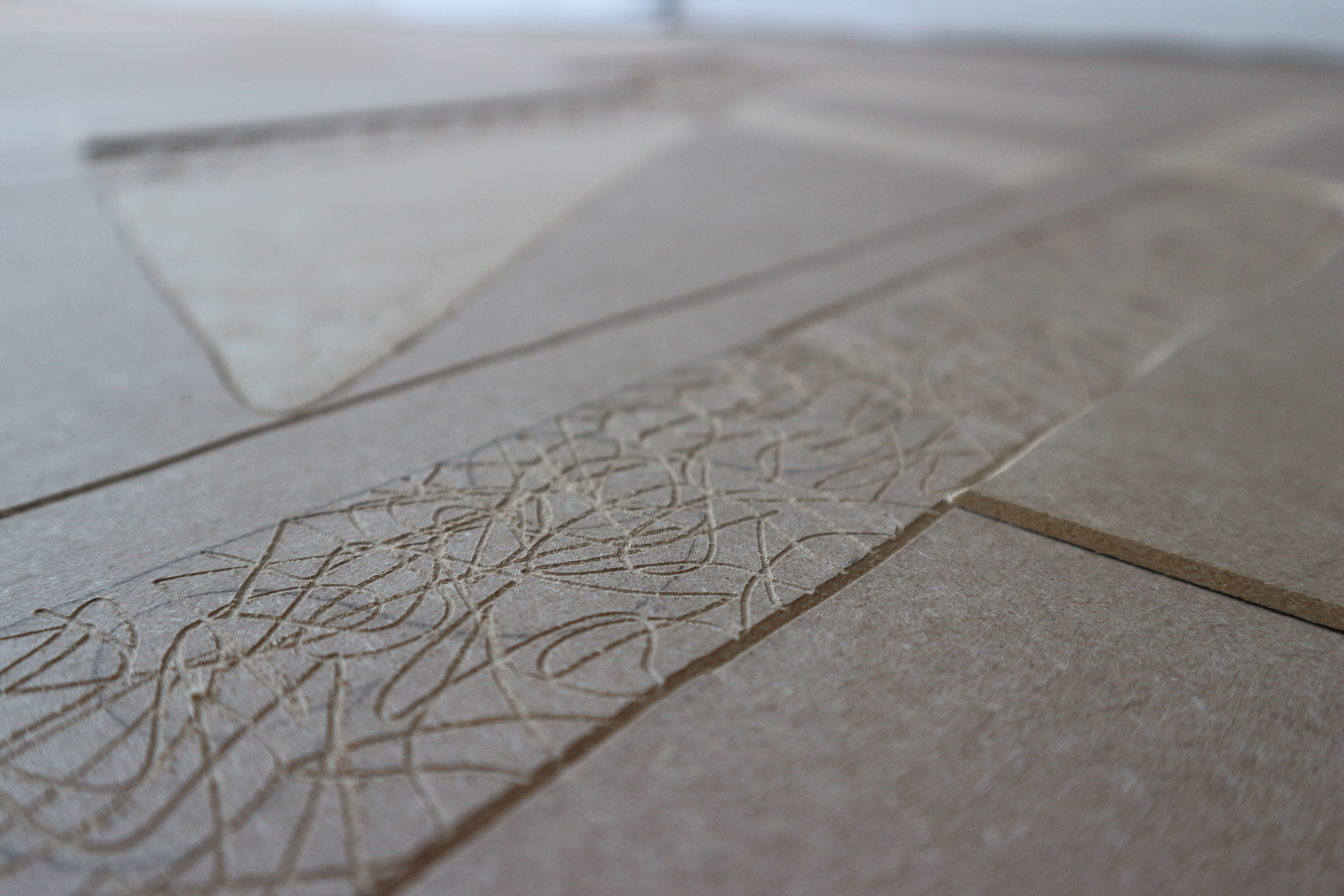 This idea of using the BOUNDARIES played into my wall layout, treating each 8x4 as an individual, when the the overlapping shapes crossed onto another board, I highlighted the difference by adding texture, height or carving away a layer. This goes back to the comment about being dependent on the space and that I let my work develop and take on influence from the situations that have occurred in my research.