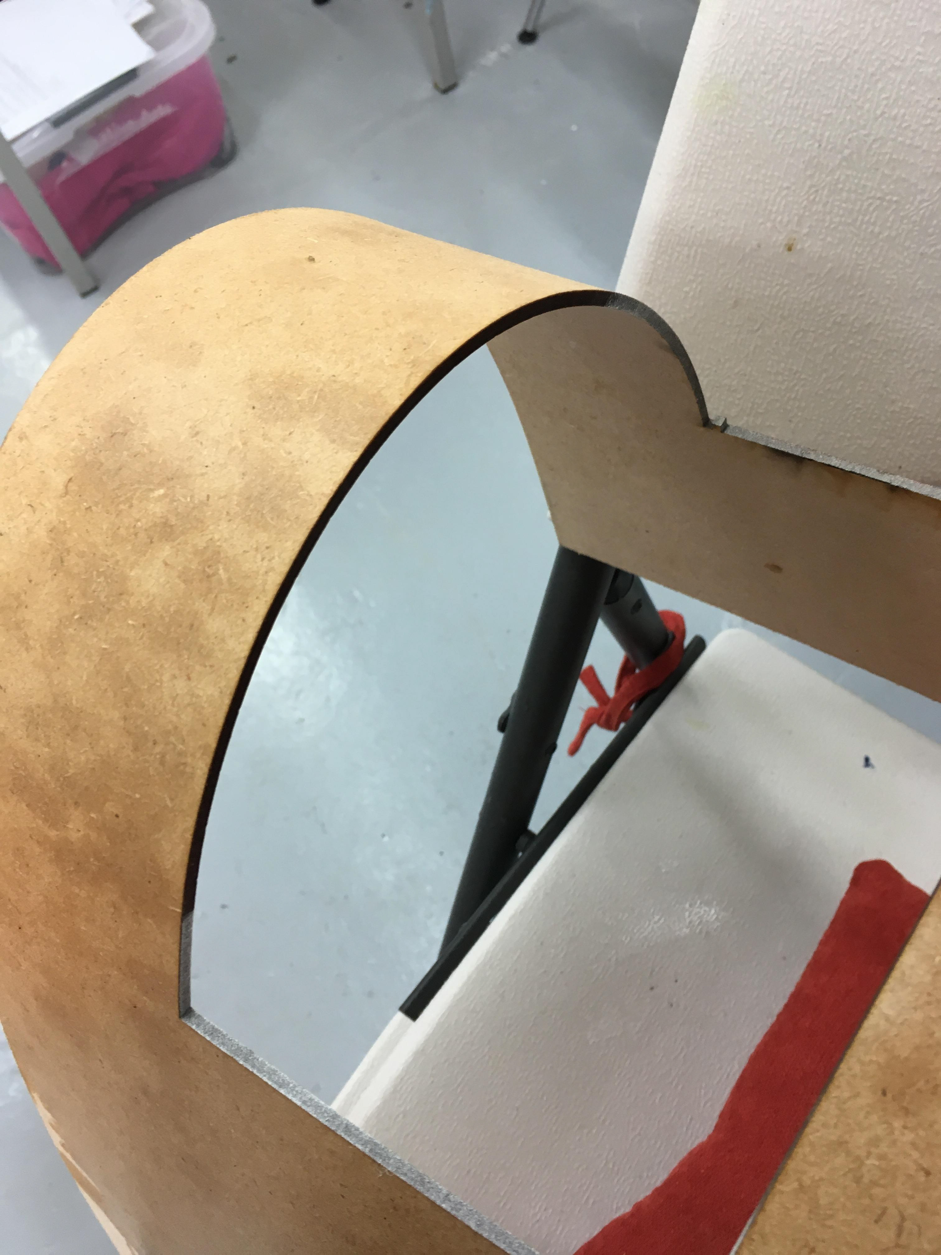 When trying to bend the board, it snapped! I asked sim and he said need the pattern to be equal, so all oblong and need to soak the mdd before bending. I tried out bending mdd with a spare bit.