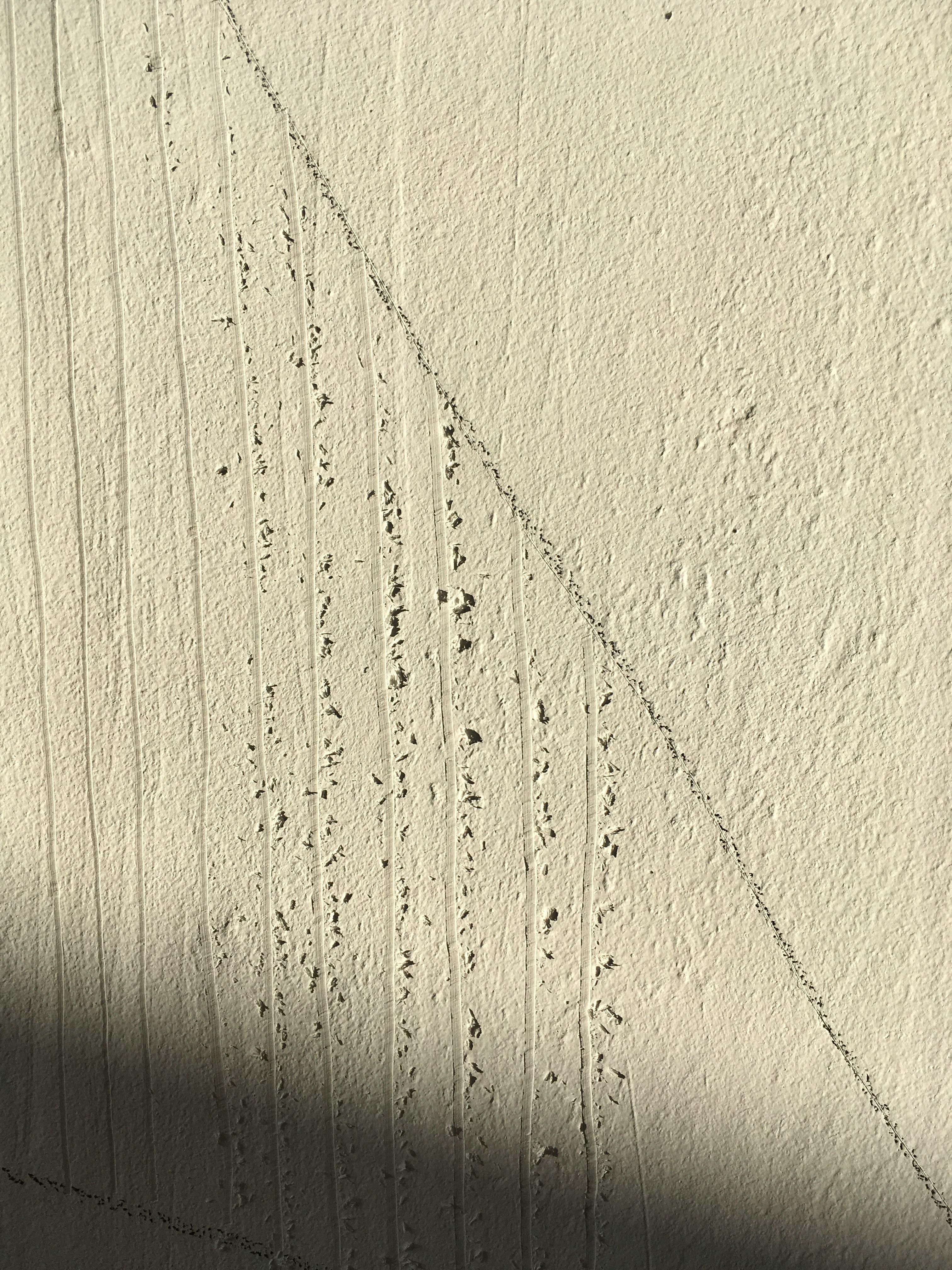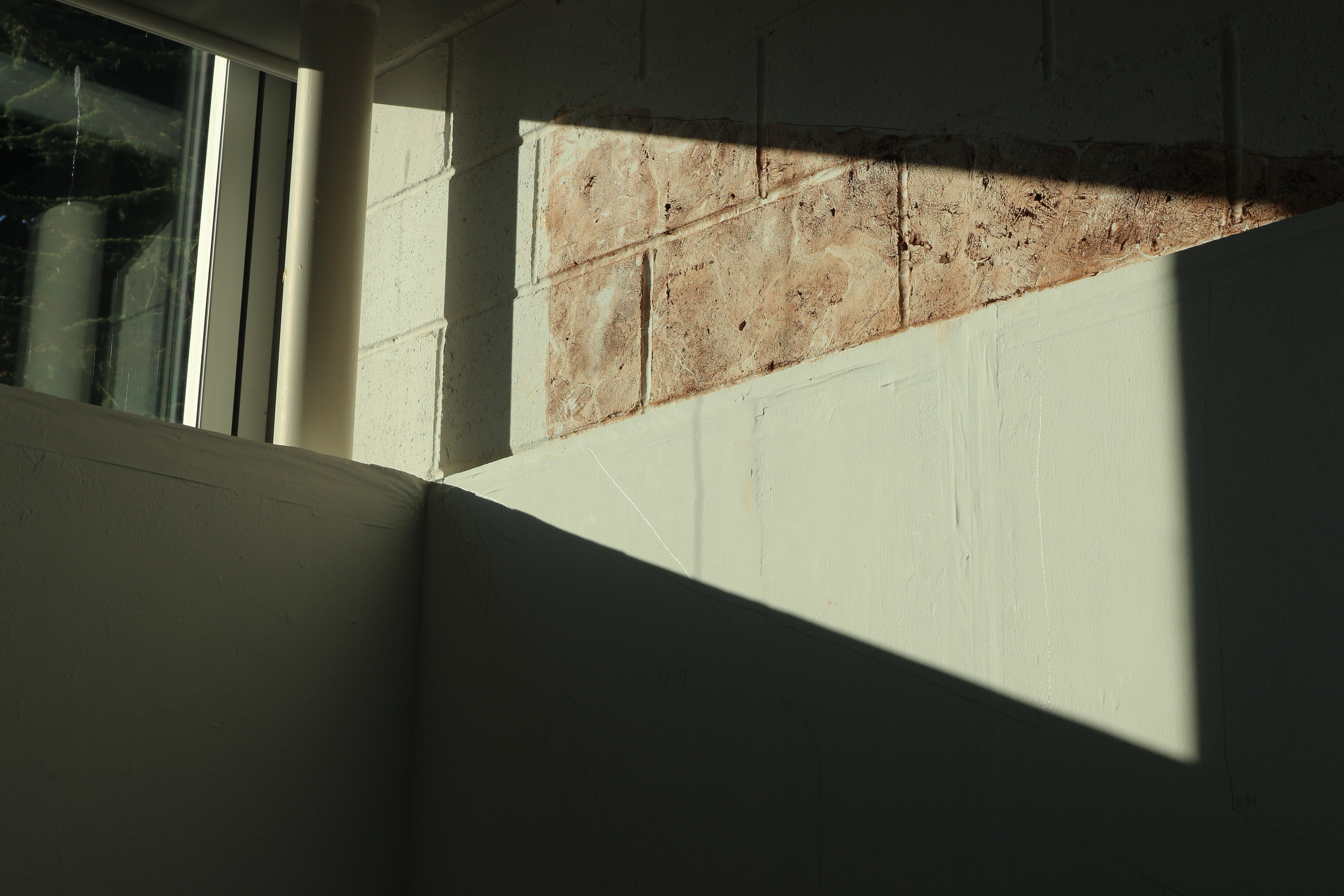 playing with the idea of adding and removing from the space (scrapping away paint and adding other materials to the wall to highlight the sun light)