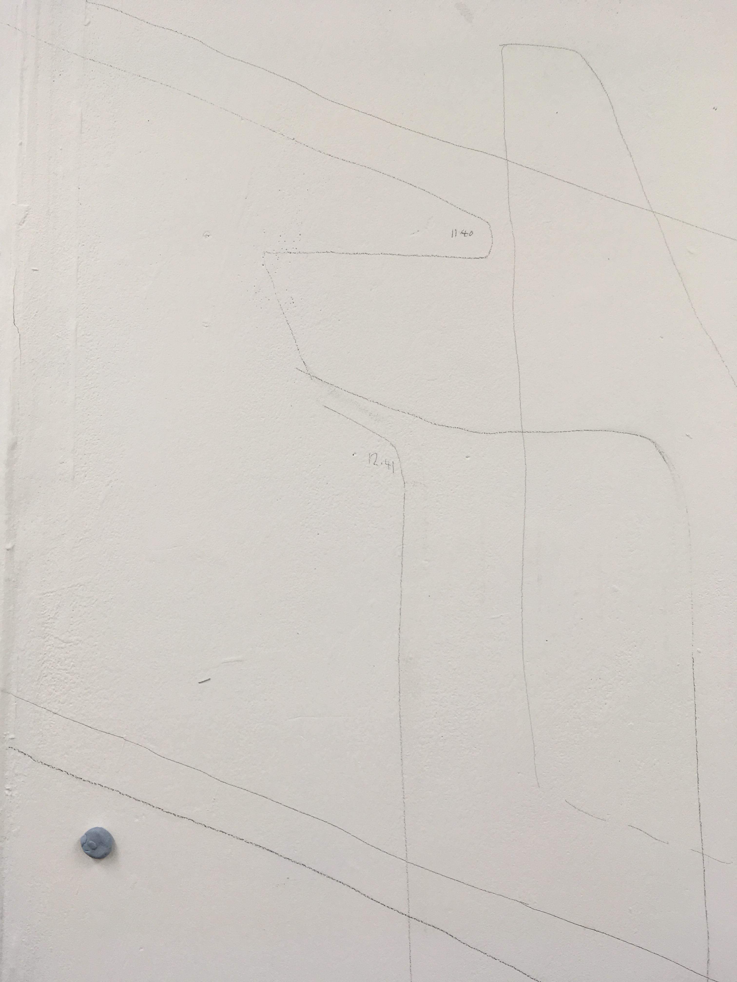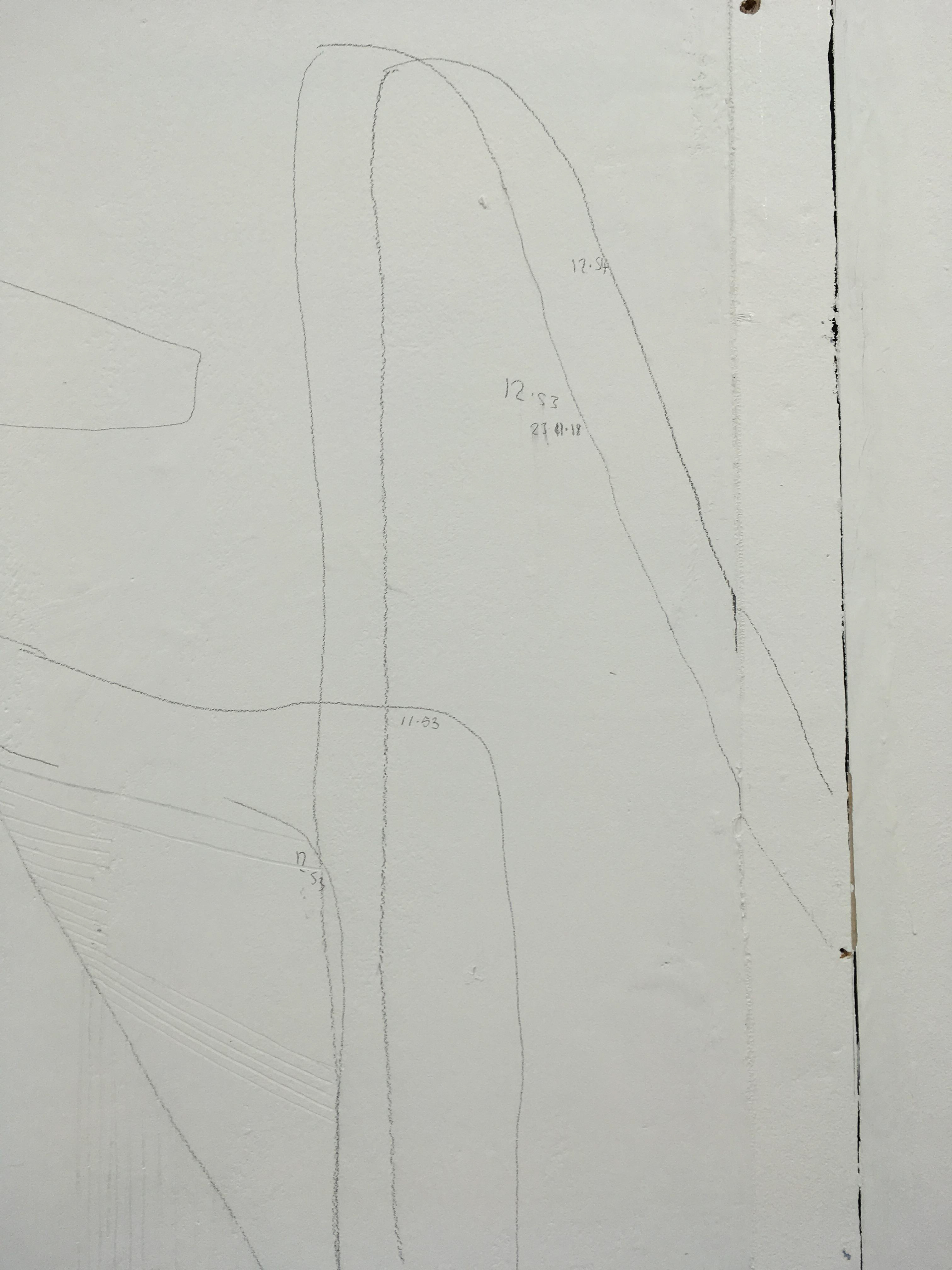 I never really took much interest in them as they were just research and my other works where covering them up. When I decided to strip down my wall of work to think things over I was intrigued by the shapes and abstract nature of what was drawn on the wall.