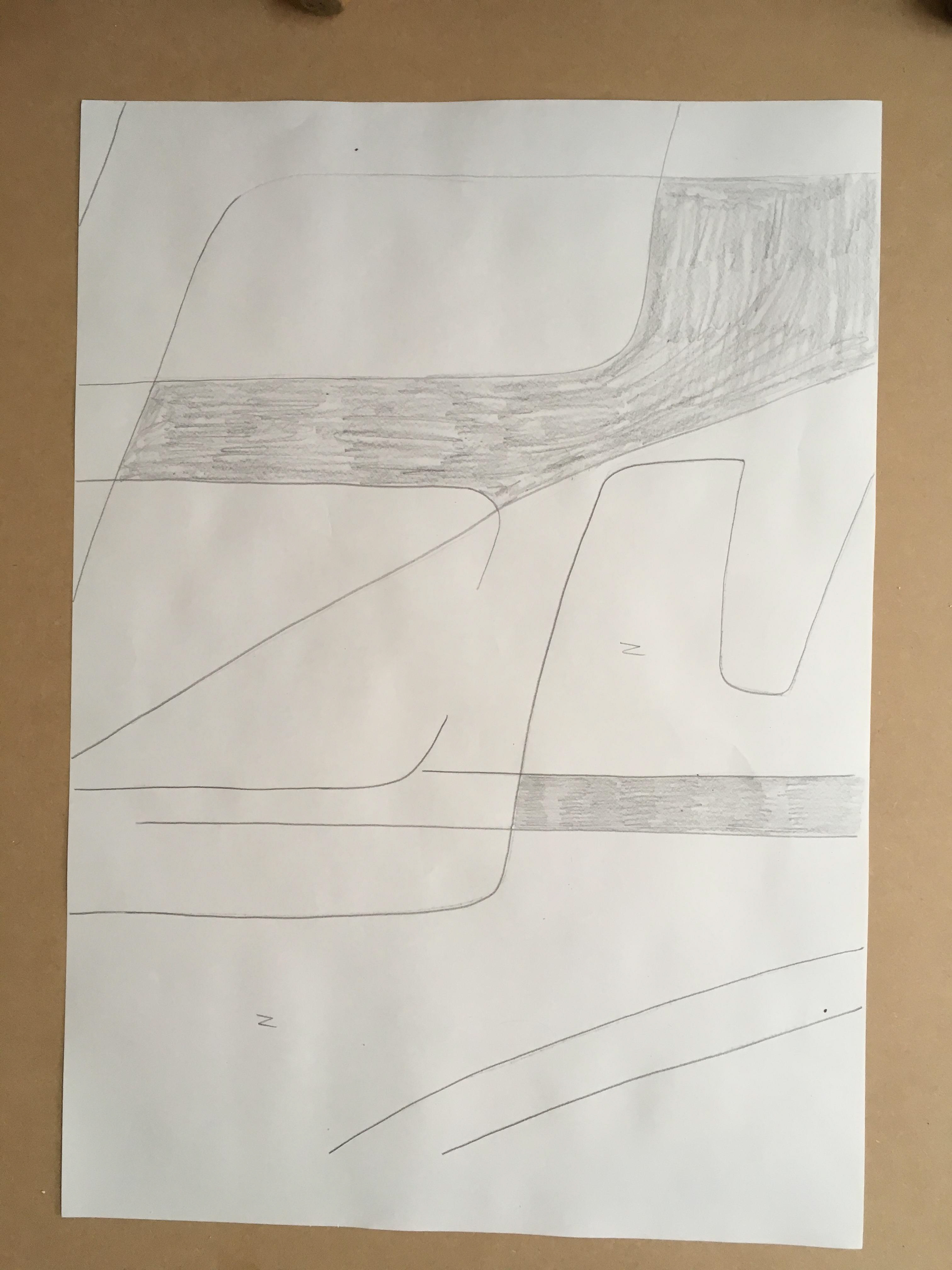 When taking down the paper, looking at each piece sit own individual piece. Really like the composition of the line work. Like my work in the hallway, playing to the BOUNDARIES and exploiting them, enjoying the framework of the A2 paper, playing to this use of the shapes being cut up.