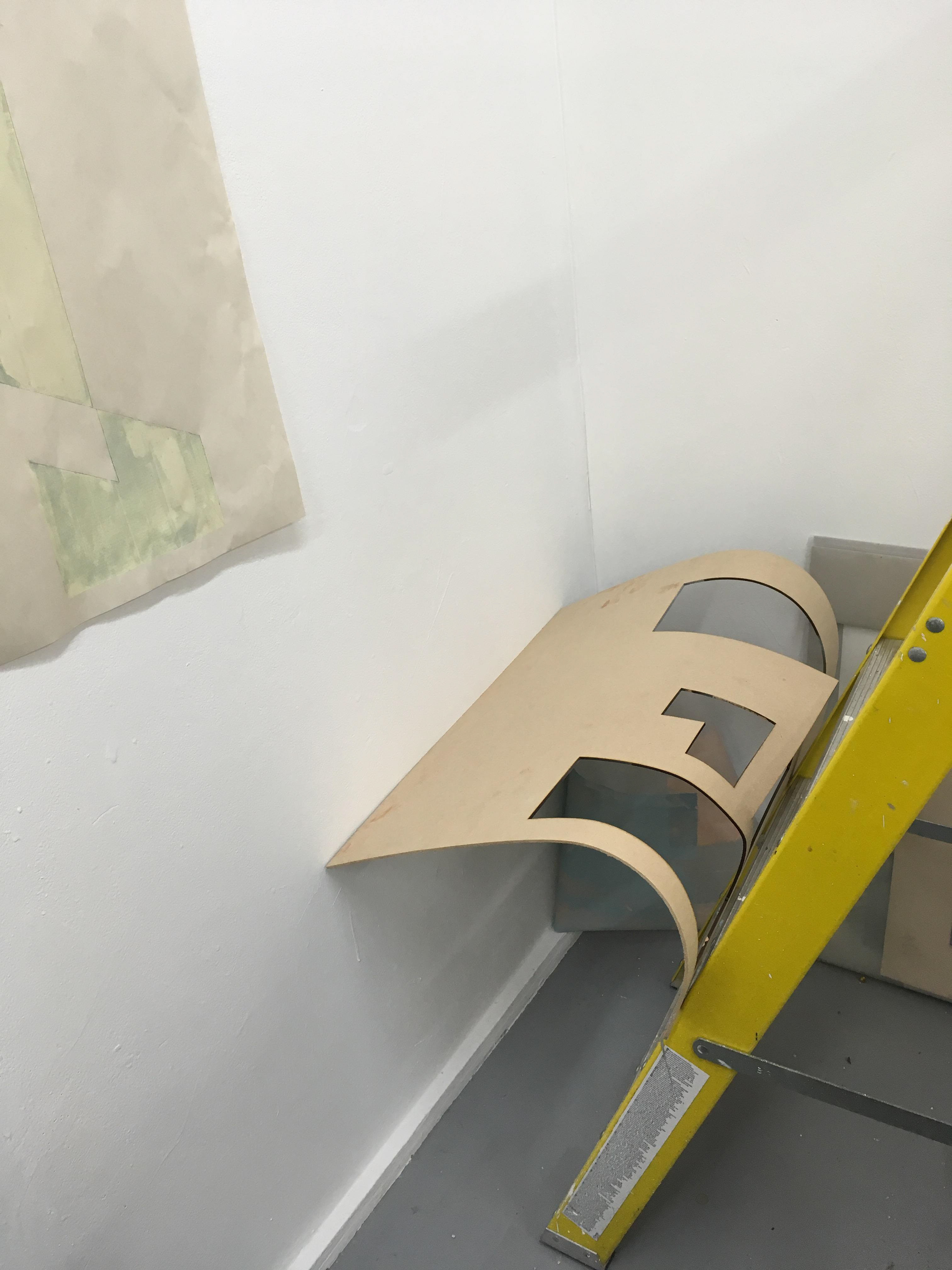 Thinking of playing with what is already there, and getting influence from my 'quick responses' with my shadows work using the paper. Thinking of upscaling this to the size of the wall, with the wall kinking out of place, with a pattern cut out to create shadows when the light hits it.