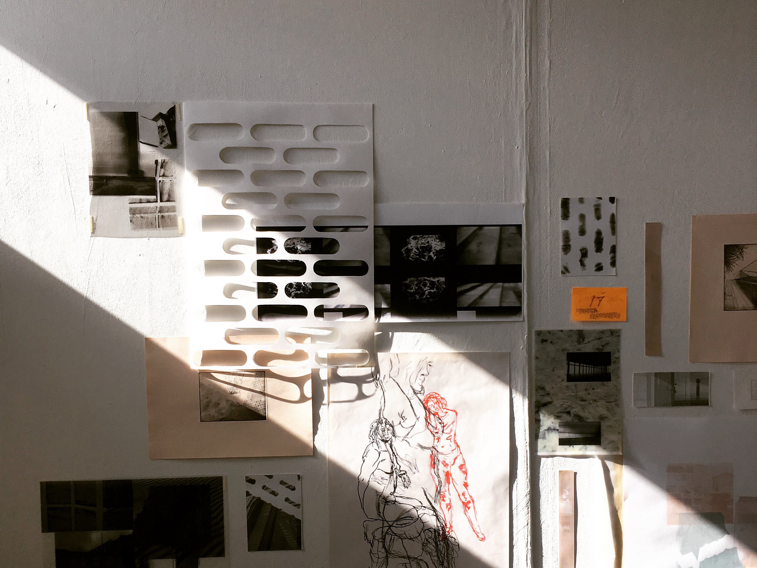 Like the frames created by the A2 size sheets and the negative spaces of the wall showing through